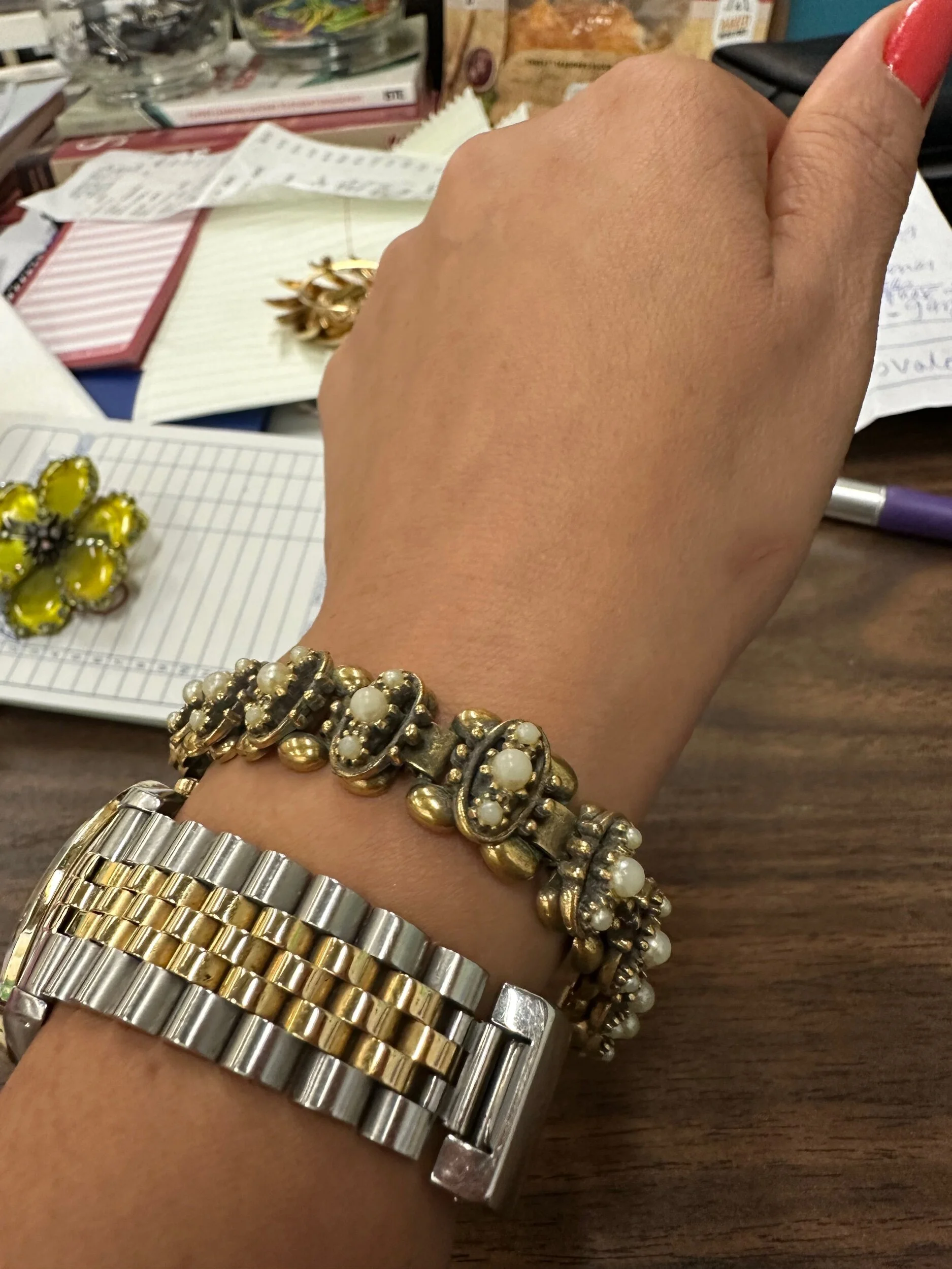 Bracelets Bracelets Clear Filters Filter Clear Filter Vintage Gold Metal Bracelet With Pearls $65.00 Sold Out Sold Out Added! Monet White With Gold Accents Bangle Bracelet $65.00 Sold Out Sold Out Added! Set Of Four Multicolor Metal Hand Painted Claistonne Enamel Bangle Bracelets $50.00 Sold Out Sold Out Added! Kenneth Jay Lane Vintage Resin With Gold Tone Metal Stamped Kenneth Jay Lane Wore By Jacqueline Kennedy, Elizabeth Taylor, Audrey Hepburn, And Princess Diana $110.00 Purchase Added! Lucite Vintage Black Shiny Plastic With Goldtone Hinges Two Tears Shaped Bangle Bracelet $85.00 Purchase Added! Simple Vintage Pinkish Faux Pearl Pearl One String In Elastic $20.00 Purchase Added! Vintage Hand Carved Natural Materials Work With Hammered Metal Details Bracelet Bangle Wide $125.00 Purchase Added! Dark Metal And Black Shiny Rhinestones Bangle Bracelet $24.00 Sold Out Sold Out Added! White Flowers Over Gold Tone Metal Linked Bracelet $24.99 Sold Out Sold Out Added! Cream Color Lucite Floral 1950 Vintage Bangle Bracelet Size 2.5” $35.00 Purchase Added! Set Of Teo Vintage Bangles With Incrusted Multi Stones $60.00 Purchase Added! large Rainbow Color Rhinestones On Black Metal Bracelet $60.00 Purchase Added! Vintage White Milk Glass Stones Bracelet On Gold Tone Metal Size 7” $65.00 Purchase Added! Custom Tennis Bracelet With Blue Accent Stones Size 7" $75.00 Purchase Added! Beautiful Purple Enamel With Purple Stones On Silver Tone Metal Bangle Bracelet $60.00 Purchase Added! Bucle Leather Rhinestones Bracelet Visible Signs Of Wear $32.00 Purchase Added! Ivory Bone Style With Gray Details Bangle Bracelet $60.00 Purchase Added! Hand Carved Wood Painted In Red Set Of Two Bangle Bracelets $42.00 Purchase Added! Rare Gold Tone Texture Open Concept Bangle Bracelet $46.00 Purchase Added! Natural Black And Marble Stones Stretch Bracelet Fee Very Cold To The Touch $42.00 Purchase Added! Beaded Hand Made Style Bracelet Size 7" $42.00 Purchase Added! Napier Stamped Silver Tone Blue Rhinestone Bangle Bracelet visible signs of wear $24.99 Purchase Added! Vintage Stunning Patina Silver Tone Metal Chunky With A Large Blue Rhinestone Bracelet Size 8" $92.99 Purchase Added! Multi Stones Set On Silver Tone Spheres With Black Thread Size 7" $32.99 Purchase Added! Wood Details On Brass Metal Vintage Unique Bangle $38.99 Purchase Added! Silver Tone Mutil-Color Faux Pearls Vintage Bangle $44.99 Purchase Added! Gold Tone Details On Bone White Enamel Bangle $34.99 Sold Out Sold Out Added! Wood Hand Painted Red With Black Crack Effect Bangle Bracelet $44.99 Purchase Added! BB Original Black Stones On Gold Tone Wire $22.99 Purchase Added! 12KGF-925 Vintage Bangle American Heritage Style Bangle Made In Mexico $110.00 Sold Out Sold Out Added! JCrew Rare Black White Turquoise Enamel In Hold Tone Metal Bangle With Chain And Magnetic Clasp $64.99 Purchase Added! Kenneth Lane Off White Enamel On Gold Stars And Moon Design Bangle With Clicking Clasp $129.99 Purchase Added! Vintage Rhinestones Set On Rhodium Excellent Condition Size 7" $82.99 Purchase Added! Super Shiny Rhinestones Mounted On Large Silver Tone Metal Links Bracelet Size 8" $64.99 Purchase Added! Alex And Ani Set Of Two With An Antique Look $42.99 Purchase Added! Brushed Gold Tone Alex And Ani Charms Include $24.99 Purchase Added! Brushed Gold Tone MetaL Alex And Ani Bracelet $22.99 Purchase Added! Blue Rhinestones On Gold Tone Stretch Bracelet $24.99 Purchase Added! Soft Pink Rhinestones Set On Gold Tone Metal Stretch Bracelet $24.99 Purchase Added! Turquoise Stretch With Gold Time Mariel $24.99 Purchase Added! Faux Like Real Pearls Bracelet With An Amethyst Rhinestones Clutch Classic And Elegant As Only Pearls Can Be Size 8" $40.00 Purchase Added! Wrist Bracelet Thick Links Gold Tone With Heart Shape Motive Covered On Small Multicolor Rhinestones Made Out Of Gold Fill Will Never Turn Color $59.99 Purchase Added! Wrist Bracelet Thick Links Gold Tone With Heart Shape Motive Covered On Small Diamond Rhinestones Made Out Of Gold Fill Will Never Turn Color $59.99 Purchase Added! Wrist Bracelet Thick Links Gold Tone With Infinite Motive Covered On Small Multicolor Rhinestones Made Out Of Gold Fill Will Never Turn Color $59.99 Purchase Added! Wrist Bracelet Thick Links Gold Tone Made Out Of Gold Fill Will Never Turn Color With A Hand Shape Of Protection Covered In Rhinestones $59.99 Purchase Added! Wrist Bracelet Thick Links Gold Tone Made Out Of Gold Fill Will Never Turn Color With A Hand Shape Of Protection Covered In Rhinestones $59.99 Purchase Added! Wrist Bracelet Thick Links Gold Tone Made Out Of Gold Fill Will Never Turn Color With A Hand Shape Of Protection Covered In Multicolor Rhinestones $59.99 Purchase Added! Wrist Bracelet Thick Links Gold Tone With Infinite Motive Covered on Small Diamond Rhinestones Made Out Of Gold Fill Will Never Turn Color $59.99 Purchase Added! Wrist Bracelet Thick Gold Tone Links Made Out Of Gold Fill Will Never Turn Color $60.00 Purchase Added! Ankle Bracelet Gold Tone Made Out Of Gold Fill Will Never Turn With Heart Shape Charm $60.00 Purchase Added! Ankle Bracelet Thick Links With One Charm Gold Tone Made Out Of Gold Fill Never Turn Color Gold $60.00 Purchase Added! Ankle Bracelet With Multicolor Butterfly Charms Made Out Of Gold Fill Will Never Turn Color $60.00 Purchase Added! Ankle Bracelet Made Out Of Gold Fill Will Never Turn $60.00 Purchase Added! wrist Bracelet Made Out Of Gold Fill Will Never Turn Color Gold Tone With three Charms $60.00 Purchase Added! Wrist Bracelet Made Out Of Gold Fill Gold Tone With Three Charms Never Turn Color $60.00 Purchase Added! Set Of Two Beautiful Bracelets With Coral Natural Stones $39.99 Purchase Added! Silver With Natural Turquoise Stones $60.00 Purchase Added! Rhinestones Thick Stretch Bracelet Sale Price: $44.99 Original Price: $60.00 Sale Purchase Added! Yellow Rhinestones Set On Gold Tone Metal Bangle Bracelet $16.99 Purchase Added! Blue Rhinestones Set On Silver Tone Metal Stre